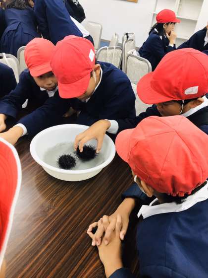 正解はウニでした。ウニは死ぬととげがなくなってしまって中のからが残るそうです。