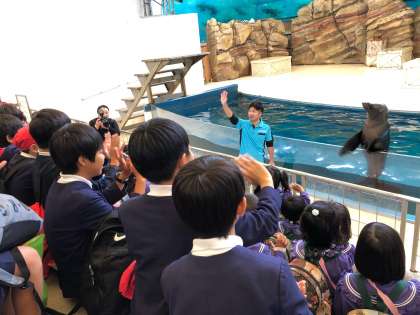 13時50分にみんな元気に鳥羽水族館を出ました。雨が降っています。