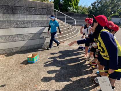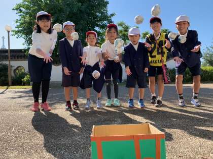 国際連合のポイントでは、おもちゃ箱にボールをみんなで入れました。
