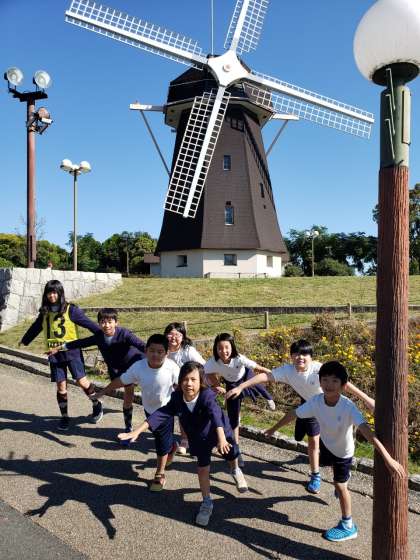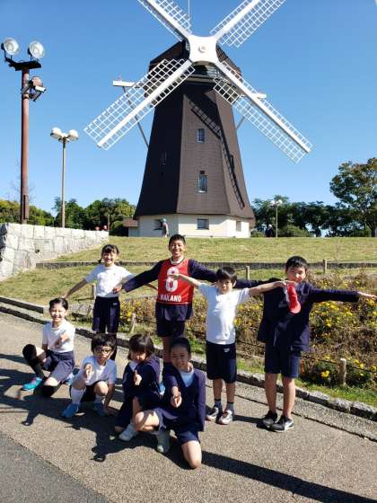 風車のポイントはみんなでポーズを決めて写真を撮りました。