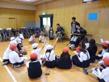 帰ってからは、グループに分かれて『作業所 あるくる』の方々とたくさん話をすることができました。車いすでの生活について、色々な質問をしながら学習を深める姿は素晴らしかったです。みんな本当に貴重な体験ができましたね!