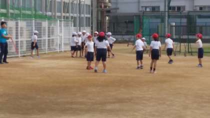 2年生は、キックベースボールをしました。一塁だけで走った方が早ければ得点になります。一生懸命声を掛け合って楽しんでいました。