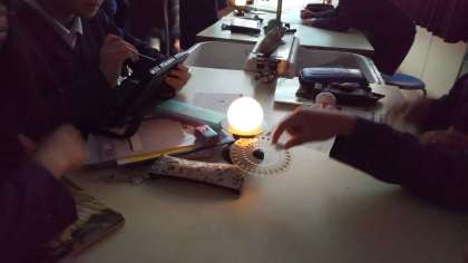 月と太陽の位置関係から月がどのように見えるかを実験しました。