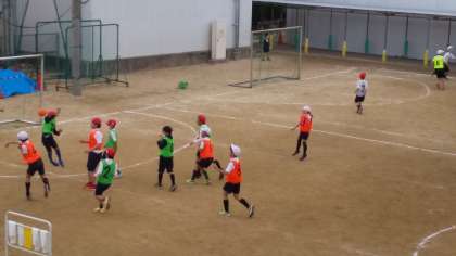 二学期は、ハンドボールをしています。パスをつないでコーナーにシュート!