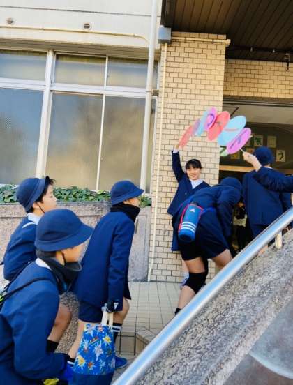 今日は、終業式です。16日から8日間児童会議メンバーが交代して門や教室前に立ち番をして全校児童にあいさつをしました。あいさつゲートをくぐるときの声が日に日に大きくなりました。始業式の中でも坂田先生が「せっかくあいさつの大切さを感じたと思うので、冬休みの間も、お家で自分からあいさつしましょう」とおはなしがありました。見本となるあいさつ運動をがんばってくれた児童会議のメンバーのみなさんありがとう。