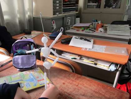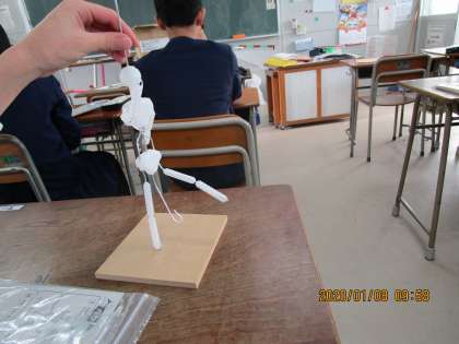 将来の自分を想像して工作をしています。今日は、なりたい自分が活動しているところを芯材でポーズを決め作りました。針金部分を曲げて動いているところを表現していました。この後、粘土を芯材に貼り付けていきます。