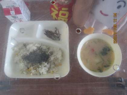 今日はお正月献立でした。白みそのお雑煮、ごまめ、れんこんのちらしずしです。