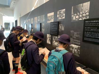 自分たちが住むこの大阪が空襲によって焼き尽くされた姿、戦時中の人々のくらし、同じ子どもたちの生活の様子などを知ることで、改めて今自分たちがしなければならないことを考えました。学校に帰ってきてからは新聞づくりを行いました。平和とはなにか、ひとりひとりが考える時間になりました。
