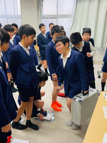 今日は6年生が租税について学習しました。税理士さんと税務署の方から税についてお話を聞きました。DVDで、税がない世界はどんな世界かを知ることで、何のために税があるのかを考えました。みんなが力を合わせて住みよい社会をつくるために、税は必要だということを学びました。自分たちの生活に関わる大切な税について真剣に話を聞いていました。最後は一千万円、一億円の重さを実感させてもらいました。