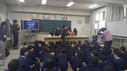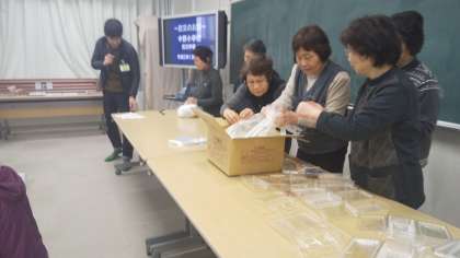 4年生は1時間目に道徳で防災ボランティアの学習をし、地域の女性部の方が来られて炊き出し訓練をしました。また、区役所の方が防災についての映像を見せてクイズもしてくださりました。