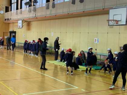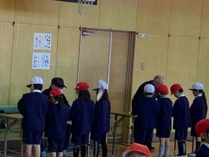 桜108の会の方に昔遊びを教えてもらいました。駒へのひもの巻き方や投げ方のコツを教えてもらったり、おはじきの遊び方を知ることが出来たり子どもたちは大喜びでした。遠くまで飛んだ紙飛行機を喜んで家に持って帰りました。九つの遊びを練習して2月末に幼稚園・保育園のお友だちに教えてあげます。