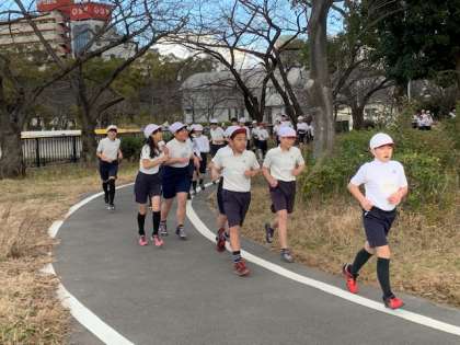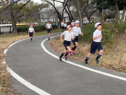 4・5・6年生で大川沿いにランニングフェスティバルの当日と同じコースを走りに行きました。寒い中自分の力を試しに走ることができました。