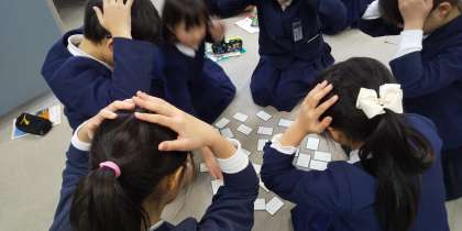 4年生は、多目的室で「百人一首大会」をしました。何枚とれたかな?