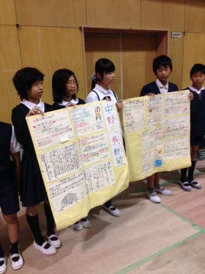 職員室前に掲示してある「中野元気新聞」、いつも人気だけれど、今日の発表を見てさらに大人気になること間違いなし!!