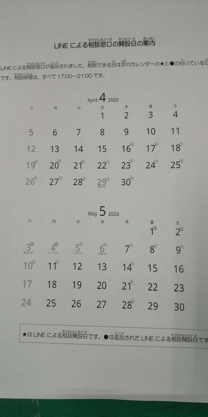 昨日までの3日間教科書等の引き取りにご協力いただきありがとうございました。お配りしました封筒に入れております、LINEによる相談窓口について、期間変更の通知が本日ありましたので、ご覧おきください。