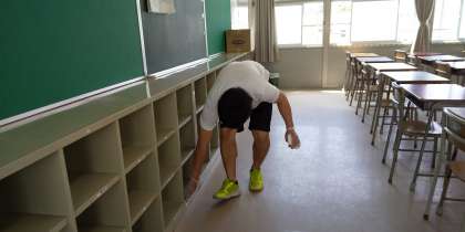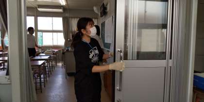 今日は、登校日2日目が終わりました。どの教室もみなさんが帰った後、机やロッカー・よく触れる手すりやトイレのドアノブ、電灯のスイッチなどを先生たちが消毒をしています。明日は、入学のにかかるオリエンテーション15日は、登校班Cチームです。