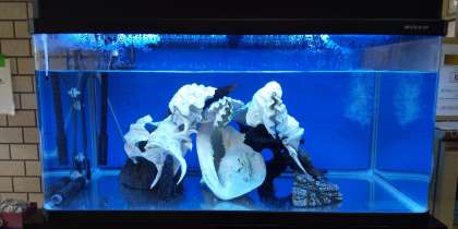 登校日に来たみなさんが玄関の水槽が変わっていることに気づき、のぞき込んでました。「何がいるのかな?」先週は、3びき隠れていたようですが、今日は、たくさんの熱帯魚が入りました。B・Cチームの皆さんも登校した時には、見てくださいね。