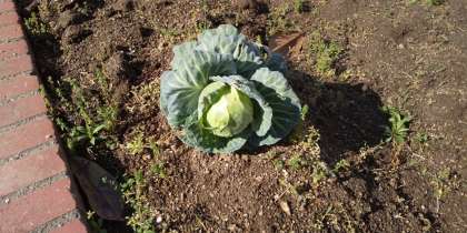 3年生の学習園にあるキャベツの中の方の葉が巻いてきて小さなキャベツができてきました。ただ、昨日、キャベツをよく見ると、小さな穴がいっぱい!では、第1問。キャベツが好きな虫は何かな?