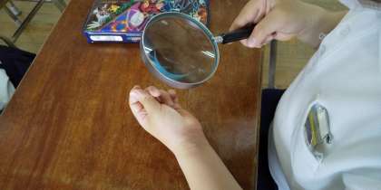 昨日のAチーム・今日のBチームとも、種の観察を虫眼鏡でしました。マリーゴールドとホウセンカです。観察した後、どちらか一つをポットに植えました。