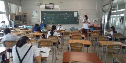 今日から6年生の授業が始まりました。3時間のうち1時間は、習熟度別少人数指導でさらに学級2分割して、算数の三角柱の展開図の描き方を学習しました
