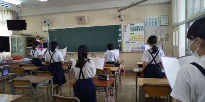 5年生は、POEMの時間として、詩をみんなで音読しています。今日は、「教室はまちがうところだ」をみんなで読みました。まちがっていいから、自分の考えをどんどん聞かせてね。