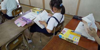 今日は、国語辞典の使い方を学習しました。五十音順に並んでいるので、どの言葉が先に出てくるか予想しながら、みんなで調べてみました。