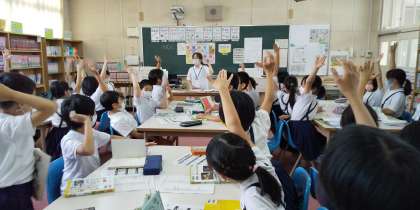 図書館補助員の川田さんが、4年生に2時間目、6時間目と図書の分類法について教えてくださいました。本についていた一桁の番号は、知っている人もいましたが、同じ文学でも日本文学、英米文学、ドイツ文学と細かく分類されていることや「いぬ」を調べるのでも調べる内容によって分類が変わることを学習しました。お家でも今日学んだことを聞いてあげてください。