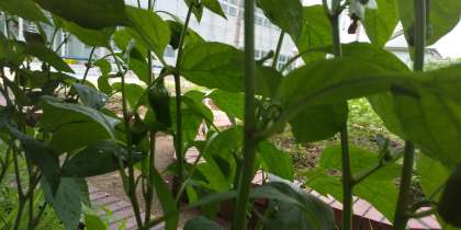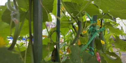 2年生の学習園でも赤ちゃんピーマンやキュウリができてきました。きゅうりは花の根元がふくらんでできているのがよくわかります。