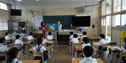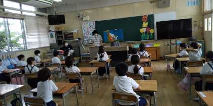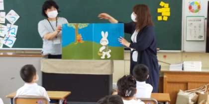 今年度の読み聞かせが始まりました。今日は、1年と5年でした。1年生にとっては、初めての読み聞かせで、大型絵本「おばけのてんぷら」を読んでいただきました。みんな一生懸命お話を聞いていました。てんぷらを勝手に食べていたおばけがてんぷらの衣に落ちてあげられそうになって・・・・。続きは、図書室で読んでね。
