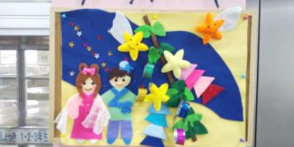 今日は七夕でした。お天気が悪くて星は見えませんが中野小学校の給食室にはひこ星もおり姫もいます。