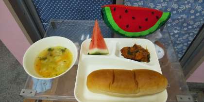 そして、今日の給食は、年に1回のスイカが出ました。さて、今日の問題は、丸いスイカをいくつに分けた一つ分だったでしょう?