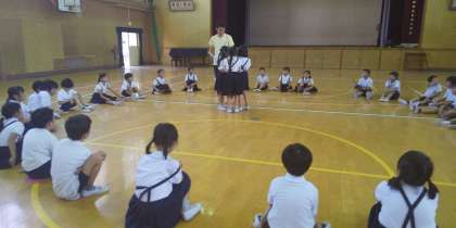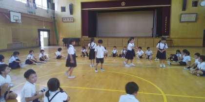 転校する友だちが喜んでくれたらいいなあと学級会で話し合って、講堂でゲームをしました。「何でもバスケット」箱の中から引いて「8月から10月生まれの人!」と言うと当てはまる人が移動します。友だちのことが分かる紙が箱に入っているので、思い付かなくても困りません。みんなで楽しくできました。