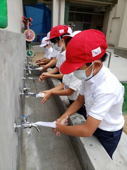今日から2学期の2測定が始まりました。どれくらい大きくなったかな?今日の保健指導は、手洗いについてでした。ローションを手につけてブルーライトにかざしてみると、手には目に見えなかった汚れがいっぱい。手洗いの仕方を保健の勝又先生から教えてもらって、しっかり手洗いをしました。