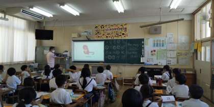 今日は、How many〜?で学習をしましたので、。映像で出てくる動物などの数を英語で答えていました。しっぽだけ見えている動物がいたり、速いスピードで流れてくるMr.Aを数えたりと楽しく学習を進めていました。楽しみながら「何匹いるの?」「いくつあるの?」の質問の仕方や答え方に慣れていきました。