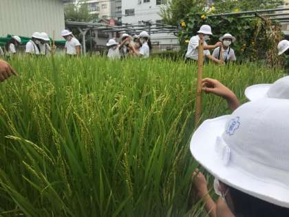 1mのものさしで高さを測ったり、稲穂の様子を観察したりしました。