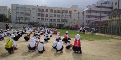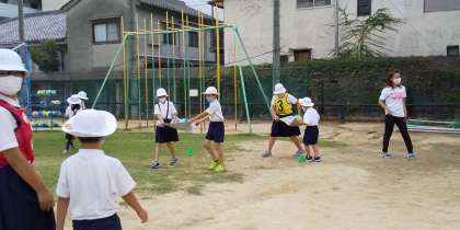 今日は、あいにくの雨で、偶数チームの集会ができませんでしたが、昨日行ったたてわり集会を紹介します。チームで異学年の友だちとペアになり、紙にボールを載せて折り返しリレーをしました。速さを合わせて上手に運べるかな?