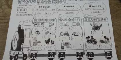 今日は「食べ物のはたらきをしろう」というめあてで学習しました。食べ物は「血・肉・骨をつくるはたらき」の赤・「熱や力のもとになるはたらき」の黄・「体の調子を整えるはたらき」の緑の三つに仲間分けできることを学びました。「食べ物の大切さがわかりました」「朝ごはんをしっかり食べて元気が出るようにしよう」など今日学習したことの感想が書かれていました。今日の夕食に使われている食物をお子様とと一緒に仲間分けしてみてください。