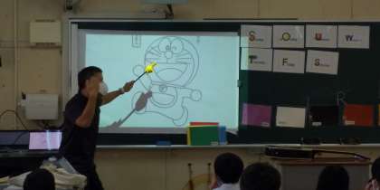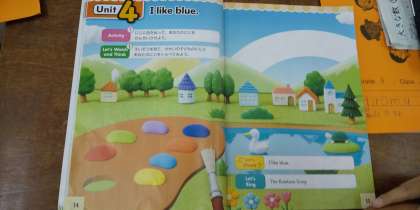 今日は、色について学習しました。What color is this? It's 〇〇?とやり取りを練習しました。rの発音の仕方や聞き取りをして light と right の違いが分かりました。ドラえもんの絵を見ながらどこが何色か?みんなで確認しました。