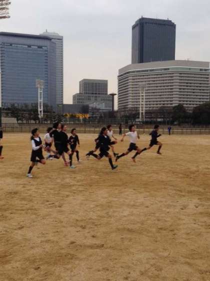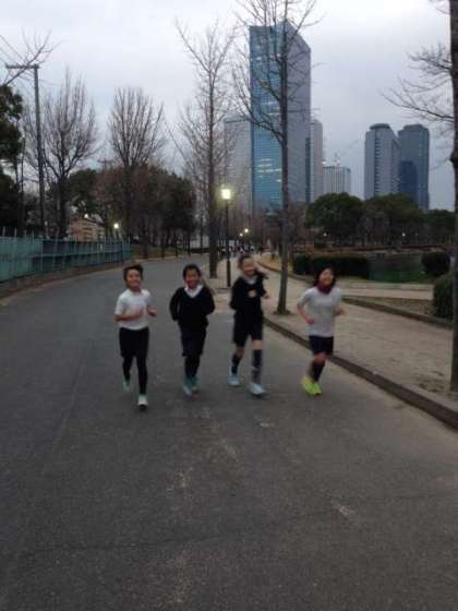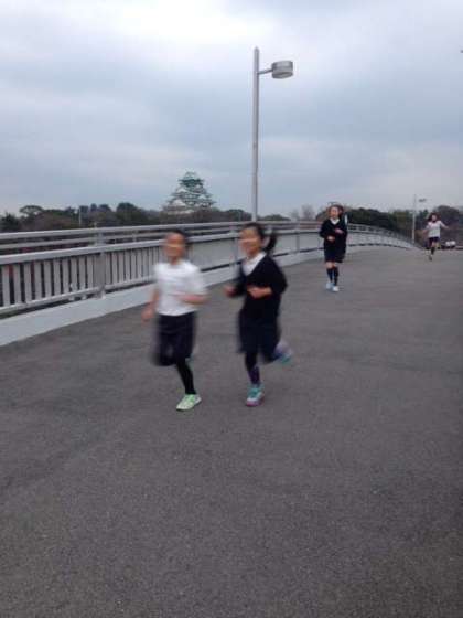 今日はクリスマスイブ。サンタさんにプレゼントをもらう前に、駅伝クラブは、大阪城までのランニング。片道、だいたい2.3キロメートル。