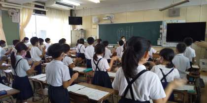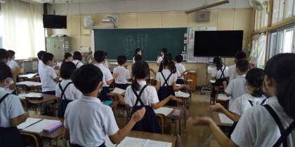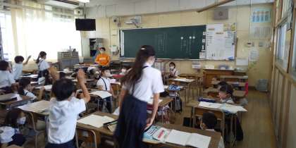 応援団の全校ダンスや拍子に合わせてのパフォーマンスを集会に行かない組で朝の時間に練習をしました。応援団の人はさすが、リズムに乗って上手に教えていました。ウエーブの練習や「1拍子!」など応援団に合わせて立ったり拍手したりしていました。「難しい!」という声が聞こえてきましたがどの子も一生懸命当日をお楽しみに