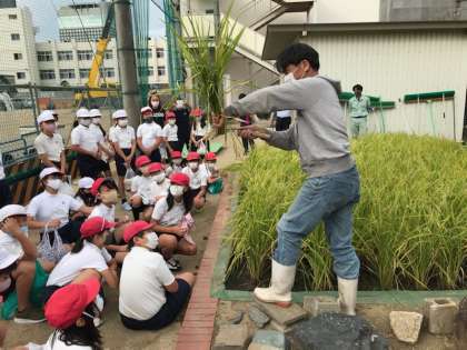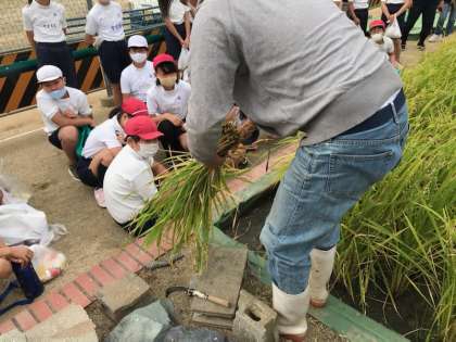 今朝は、5年生が総合学習で取り組んできた「稲」をついに刈りました。