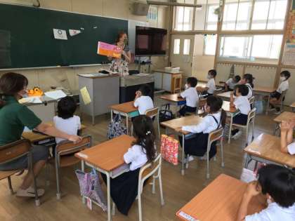 C-NETの先生が、1年生の外国語活動の授業をしました。