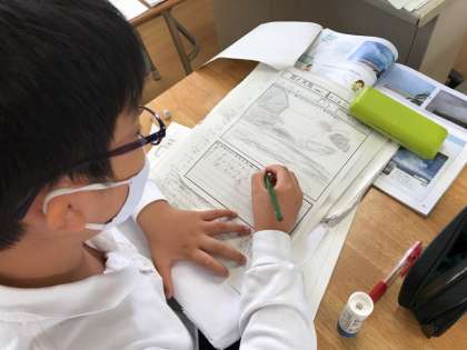 「自分の書いた観察カードと同じかな?」「雲の流れる方向は?」