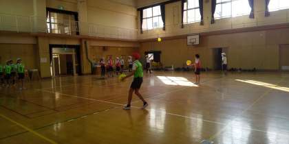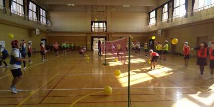 6年生は、体育でソフトバレーボールをしています。チームに分かれてアンダーパスやオーバーヘッドパスなど練習し、その後、サーブ練習をしました。最後にゲームをして楽しく学習しています。パスが上手に相手に返せる人も増えています。