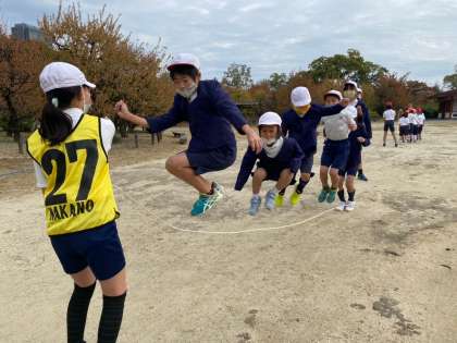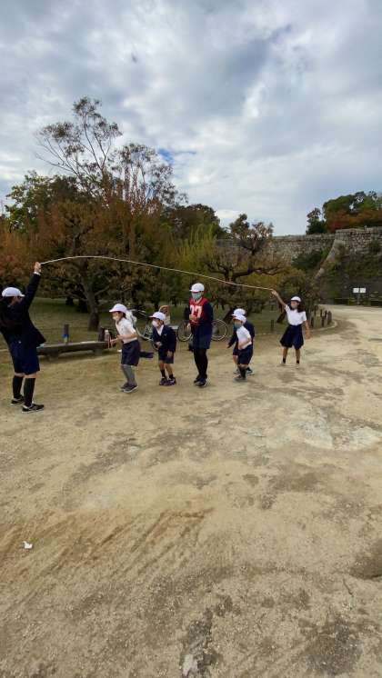 最後のポイントは、梅林で「みんなでジャンプ」です。気持ちを合わせて跳んだ数だけ点数になります。最高記録は、11回でした。