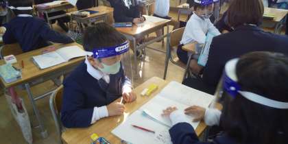 くりあがりのたし算の学習です。「8+3の計算の仕方を考えよう」というめあてでした。前時に習ったことを思い出して10より大きくなること、ブロックやおはじき・ことば・ドットを使って考えるという見通しをもって一人一人進めていきました。近くの人と自分の考えを交流しました。どの子も10のまとまりをつくって考えていました。