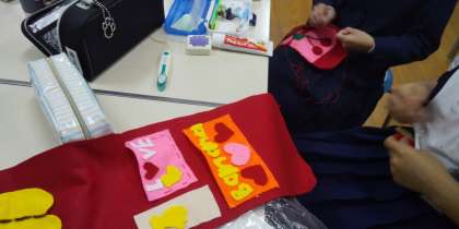 手芸クラブでは、フェルトを使って、小物づくりをしています。中には、ウォールポケットなど大作に取り組んでいる人もいます。