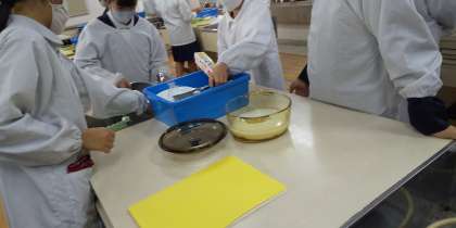 10月に5年Dash村で収穫した「中野米」を家庭科でお米の炊き方を学習し、一人一人でおにぎりにして食べました。透明の鍋でご飯を炊くのでお米が炊けていく様子がよくわかりました。みんなおいしそうにおにぎりをほおばっていました。