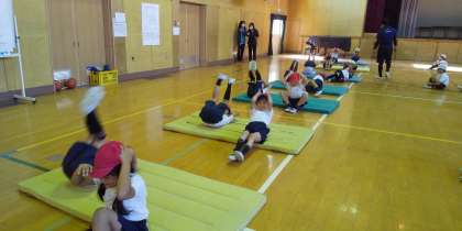 2年生は、マット運動を教えていただきました。上手く回れるコツを教えてもらってみんな前回りは上手に回れるようになりました。後ろ周りのコツも聞いて挑戦しました。教えていただいたことを忘れずこれからも練習していきましょうね。