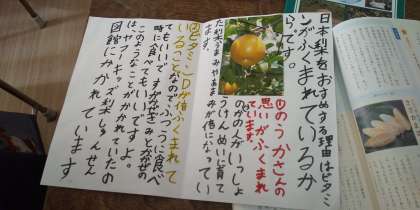 国語で各県の名産物を紹介するリーフレットを作りました。それぞれ工夫して分かりやすいリーフレットをつくっています。